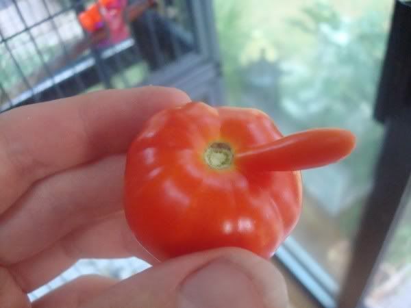 hey you guys, hey S(S)S! Check out this tomato! Oh my god, that's totally for real. How hilarious is that?